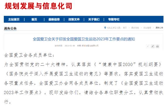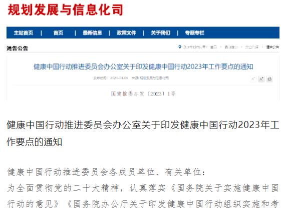 健康中国行动推进委员会办公室关于印发健康中国行动2023年工作要点的通知 ,健康中国行动推进委员会各成员单位、有关单位:为全面贯彻...