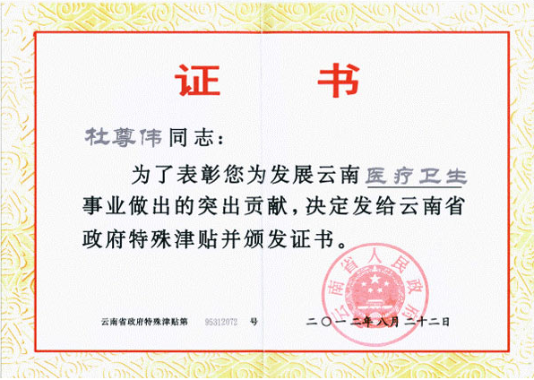 省寄防所副主任医师杜尊伟荣获2012年云南省政府特殊津贴,到目前为止,该所先...