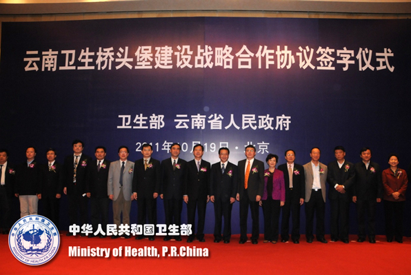 10月19日,卫生部和云南省人民政府在京签署加快卫生桥头堡建设合作协议书。部...