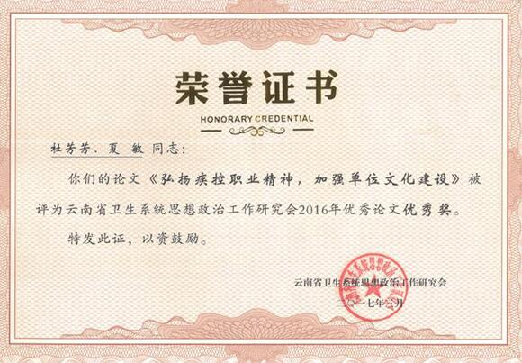 经云南省卫生系统思想政治工作研究会严格评审,由省寄防所党委办公室杜芳芳...