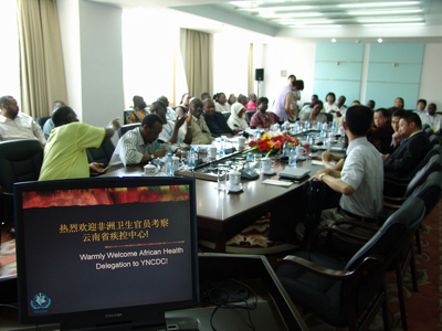 云南疾控资讯网讯:7月29日下午,参加艾滋病防治管理研修班的非洲国家卫生官员们来到云南省疾病预防控制中心。非洲国家卫生官员听取了云南省疾病预防控制中心主任陆林先生的专题介绍,并参观了云南省疾控中心的艾滋病自愿咨询检测现场。
