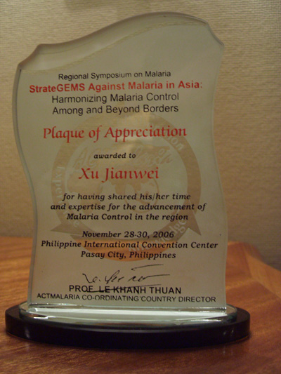 受亚洲疟疾培训协作网(ACTmalaria)和世界卫生组织(WHO)的邀请,云南省寄生虫病防治所许建卫同志于2006年11月28-30日出席了在菲律宾马尼拉国际会议中心举办的亚洲疟疾培训协作网成立10周年庆典及亚洲区域疟疾研讨会。