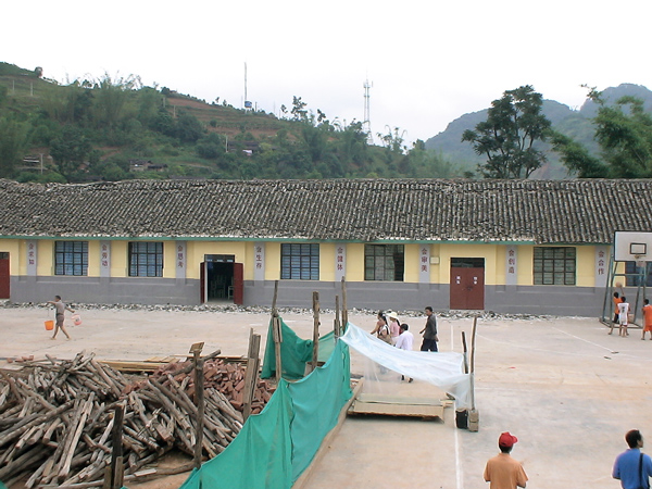 防病组查看同心乡锅底塘村小学受灾情况