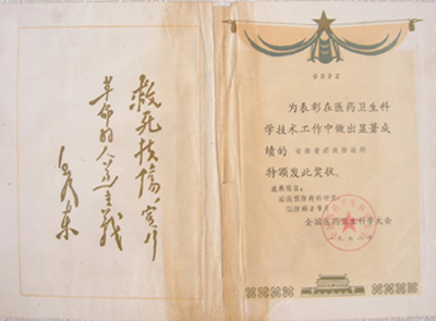 一九七八年为表彰在医药卫生科学技术工作中做出显著成绩的