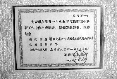 获奖着:云南省疟疾防治研究所 金淑仙 杨平方 李菊升