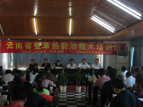 为提高我省登革热防治预防与医务人员的登革热防治水平和处置能力,做到对登革热疫情的早期发现、早期报告、早期诊断治疗,建立较为完善的登革热监测系统和处置机制。2006年10月26日,受卫生厅疾病控制处委托,由云南省寄生虫病防治所主办、瑞丽市疾病预防控制中心协办的云南省登革热防治技术培训班如期在瑞丽市九州宾馆召开,由来自8个边境州市疾病预防控制中心(文山、版纳、思茅、怒江、临沧、保山、德宏、红河)、25个边境县市疾病预防控制中心(其中瑞丽包括医院、乡卫生院)共计124位学员参加了本次为期5天的培训。