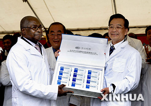 6月20日,正在刚果(布)进行正式访问的国务院总理温家宝参观布拉柴维尔达朗盖医院并向刚果(布)卫生部和达朗盖医院赠送药品