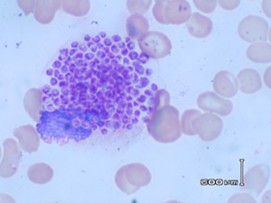 图3 黑热病患者骨髓涂片:光镜下可见巨嗜细胞内圆形或卵圆形利什曼原虫,