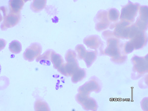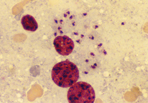 图5:黑热病利什曼原虫无鞭毛体(杜利体)。前鞭毛体